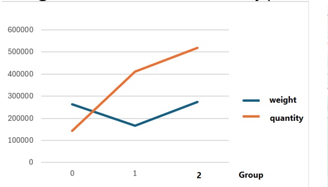 The chart of quantity and weight shows group number two delivers more